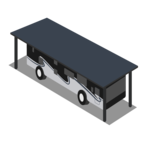 3 Sided Covered Parking Spaces for RVs, vehicles, boats, and trailers with a 14ft height clearance.